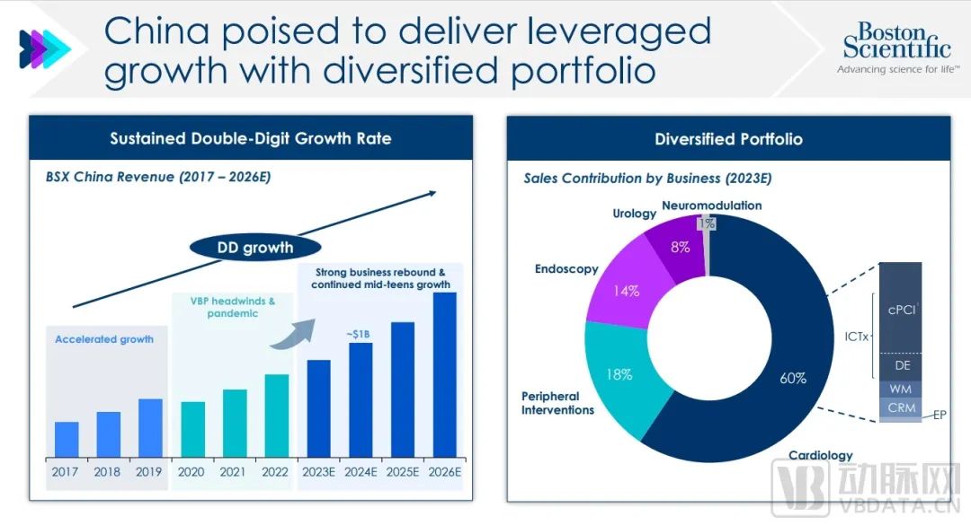 波士顿科学中国市场营收展望与构成 图源:波士顿科学 2023 Investor Day