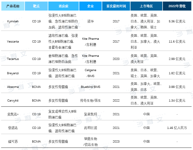 图:已上市CAR-T产品概览