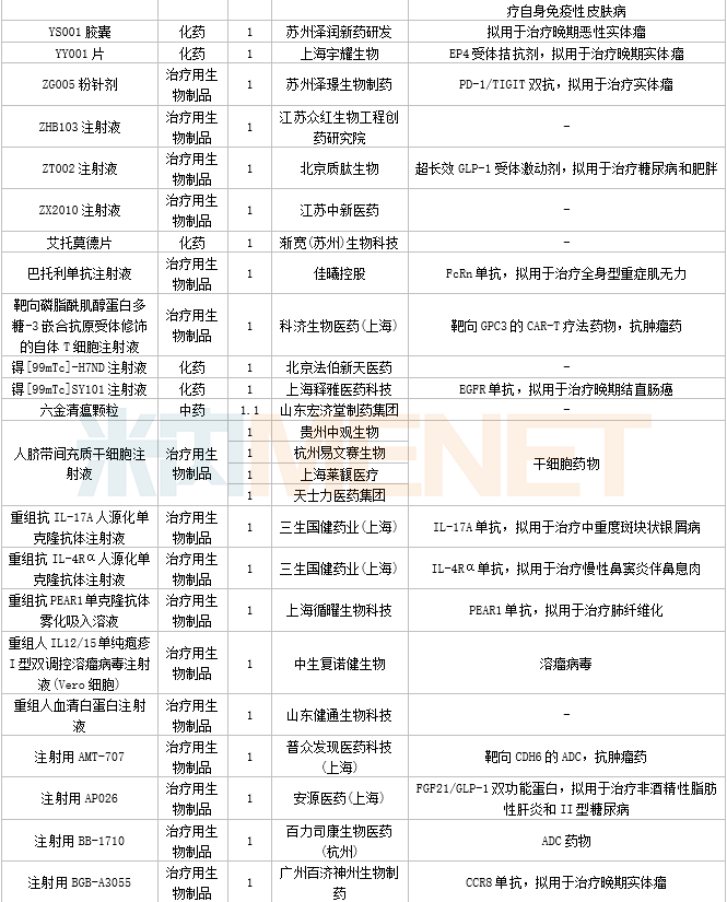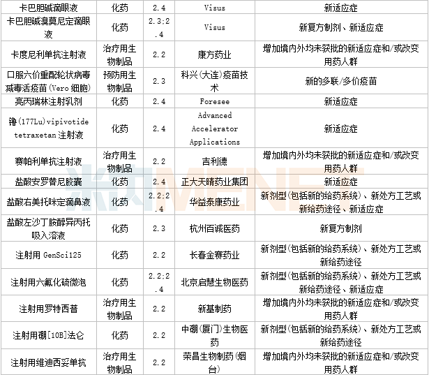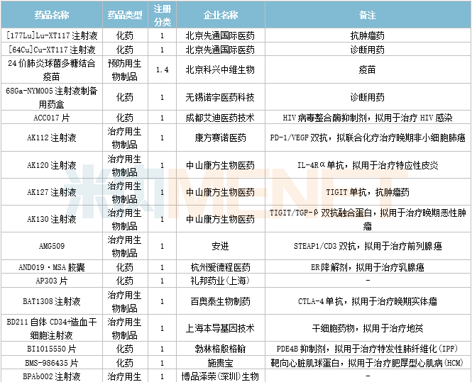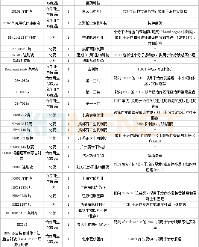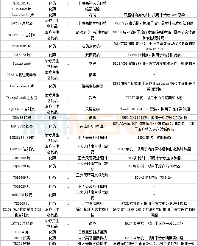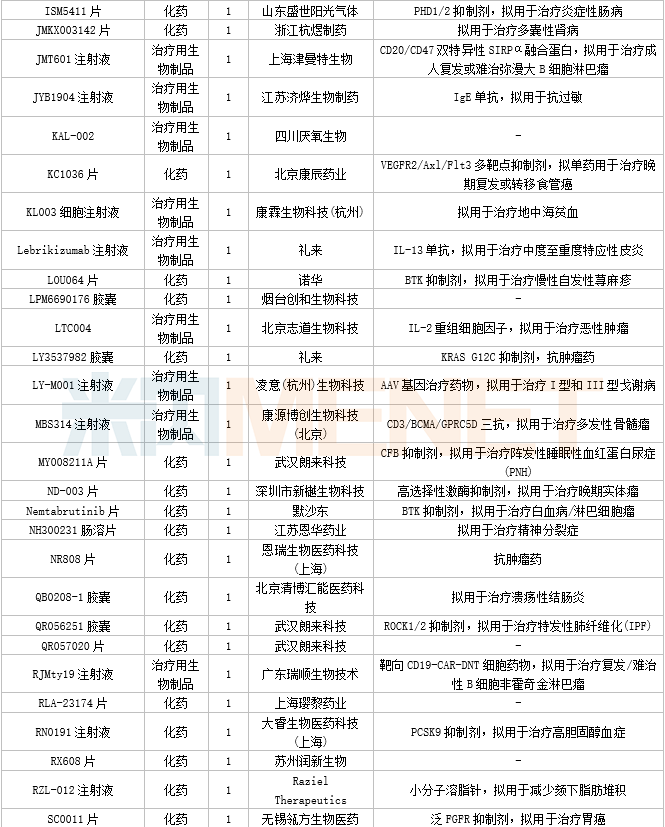 数据来源:米内网中国申报进度数据库(MED)、CDE、NMPA;相关统计字段按药品名称统计,时间截至2023年10月31日;获批品种按NMPA发布时间统计;药物作用靶点以及适应症整理自公开资料。