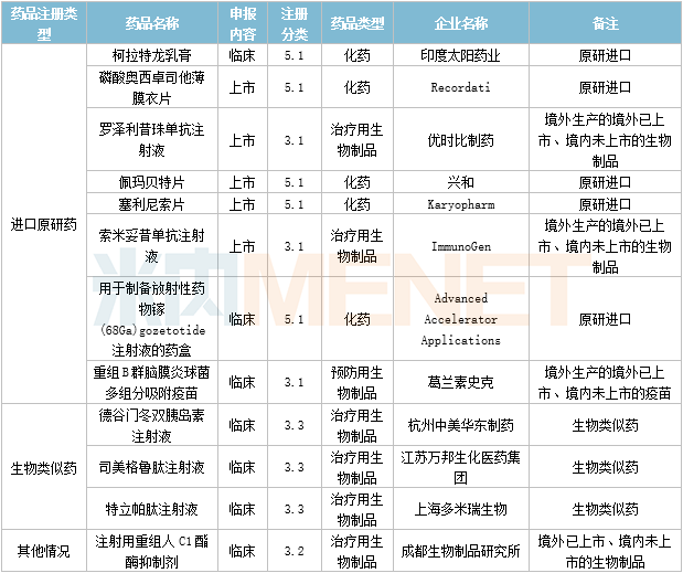 2023年10月,有5个进口原研药、3个生物类似药申请临床。