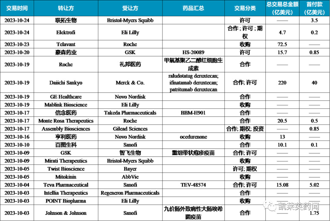 3.2023年10月MNC交易汇总:总交易金额超367亿美元,“大厂扫荡”为哪般?;凯莱英药闻