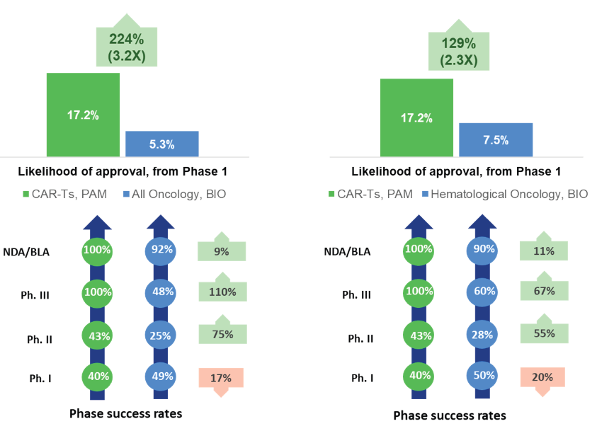 ▲血液肿瘤的CAR-T/TCR疗法的获批成功率较高(图片来源:参考资料[1])