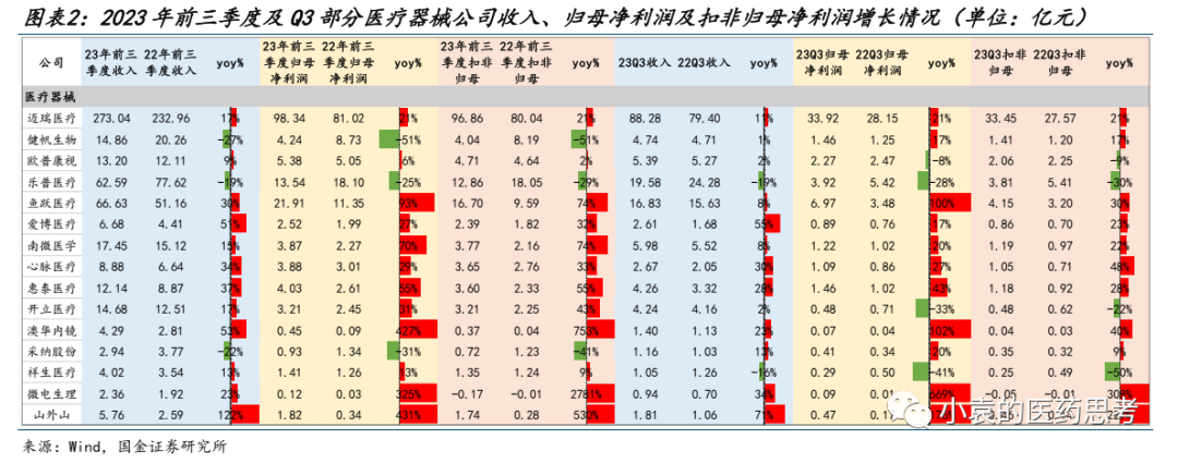 以目前统计到的部分医疗器械上市公司业绩为例,2023前三季度板块收入同比增长+11.7%,归母净利润同比增长+18.6%。扣非归母净利润同比增长15.8%;