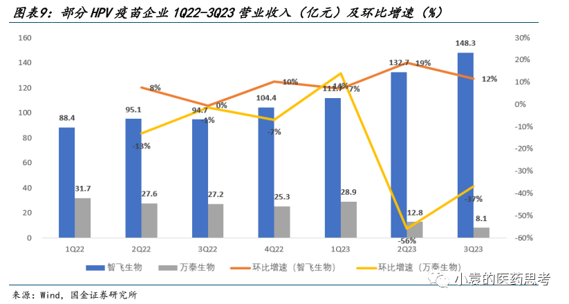 2023年3季度,9价HPV疫苗、四价流感裂解疫苗、带状疱疹疫苗等重磅品种快速放量,有力带动相关公司业绩实现较快同比增长。