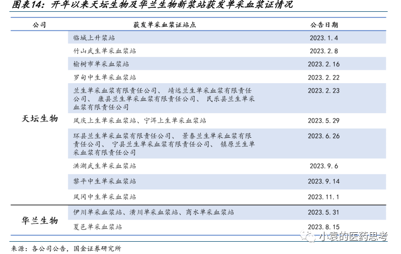 浆源拓展方面, “十四五”以来,头部公司天坛生物、华兰生物等在新浆站拓展方面持续取得突破,浆源规模优势凸显,成长潜力有望逐步兑现。