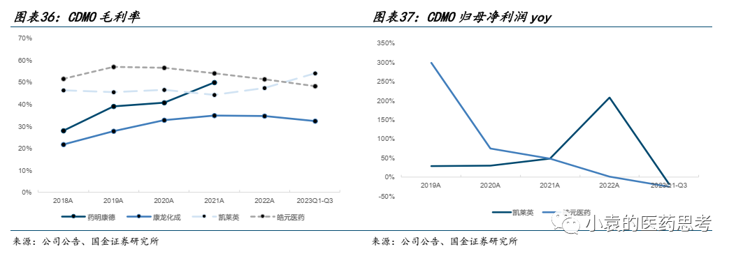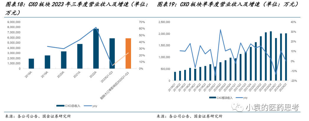 业绩端:增速受特定大订单影响大。2023年前三季度CDMO板块实现收入266.43亿元,同比下降1.56%。剔除特定大订单影响后板块营收增速35.85%。
