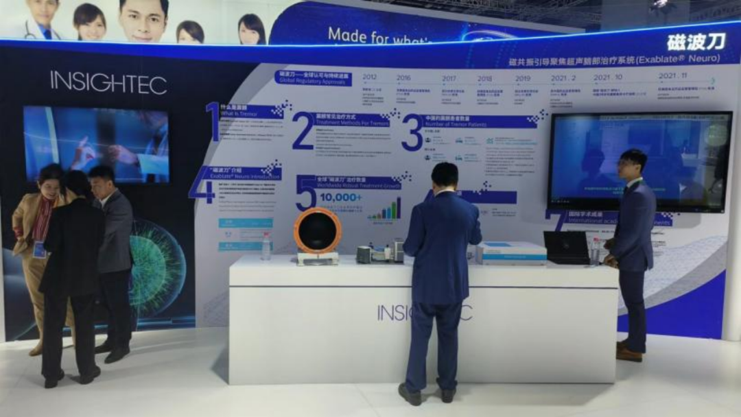 今年进博会上,复星医药携手Insightec带来一款神经系统疾病治疗领域的前沿创新产品——“磁波刀”,又称“磁共振引导聚焦超声”脑部治疗系统。该治疗系统已获得欧洲CE认证和美国FDA批准,并于2021年通过中国国家药品监督管理局的批准,是目前用于临床治疗药物难治性特发性震颤和以震颤为主型的帕金森病的无创手术方案。