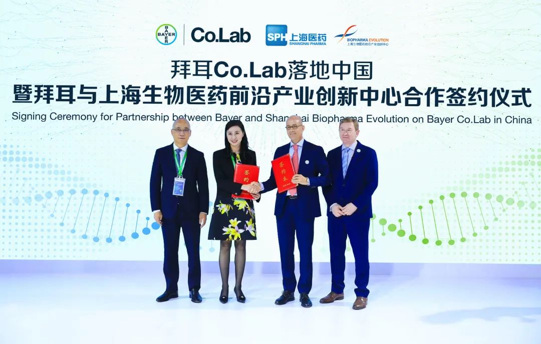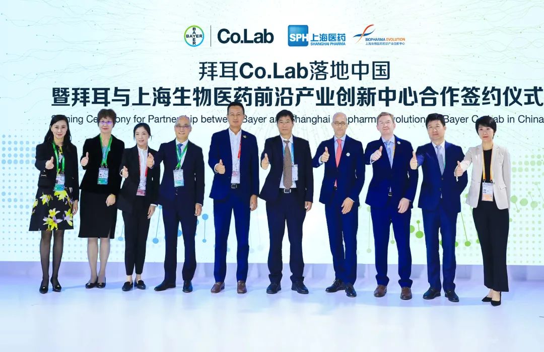 根据合作协议,拜耳与上海医药在即将落成的上药生物医药产业基地(位于张江路88号,简称上药产业基地)携手共建面向细胞与基因疗法及肿瘤等前沿领域的共创平台。借助上药产业基地的创新孵化平台及一体化解决服务,Co.Lab共创平台将充分发挥拜耳全球创新与合作网络以及细胞与基因治疗方面的技术专长,以及上海医药在国内的资源网络及上海生物医药前沿产业创新中心创新生态的建设,培育本地初创企业成长,加速早期创新成果转化及产业化,打造专注中国细胞与基因治疗创新品牌,并助力本土企业链接全球资源、开拓国内外市场的业务发展。该项目预计将于2024年下半年正式投入运营。拜耳集团处方药事业部全球执行副总裁兼中国区总裁、拜耳集团大中华区总裁周晓兰表示,“拜耳作为一家长期投身中国发展的跨国企业,非常看好中国正在蓬勃崛起的源头创新。我们十分高兴能和上海医药携手共建拜耳Co.Lab共创平台,培育本地早期创新与初创企业。拜耳与上药强强联手,发挥双方优势专长,助力上海提升在细胞基因治疗等前沿领域的科技创新策源能力,链接全球资源网络,赋能本地创新生态及全产业链,实现‘植根中国,链接世界,助力本地创新走向全球舞台’的愿景。”上实集团总裁、上海医药集团董事长周军表示:“作为沪港两地上市的大型医药产业集团,上海医药立足上海、对标全球,不仅承担着保障民众生命健康的重要责任,同时也在打造自身的产业特色中,积极服务国家战略,以高质量发展格局助推中国式现代化。对于上海前沿创新中心这个平台,我们首要的目标是CGT、基因编辑。这些领域会加大投入,希望能孕育出更加有前沿性和影响力的科研成果。”拜耳与上海医药此次对于共创平台的合作,不仅是双方对中国政府所倡导的“健康中国2030”规划以及“创新驱动发展”战略的积极响应,同时也契合了上海市委市政府“加快推进建设具有全球影响力的科技创新中心”,“推动基因治疗与细胞治疗协同发展,加快打造生物医药科技创新‘核爆点’和产业发展‘集聚区’、推动创新成果转化”的政策导向。11月7日,拜耳集团大中华区首席财务官Ulrich Stefer和上海医药总监、上海生物医药前沿产业创新中心董事兼副总经理张琳在进博会现场就上述项目签署了合作协议。上海推进科技创新中心建设办公室、上海市国有资产监督管理委员会、中国(上海)自由贸易试验区管理委员会金桥管理局领导,上海医药相关部门负责人和前沿创新中心管理层以及拜耳处方药事业部高级副总裁、全球区域业务发展及开放创新负责人Friedemann Janus博士出席签约仪式。