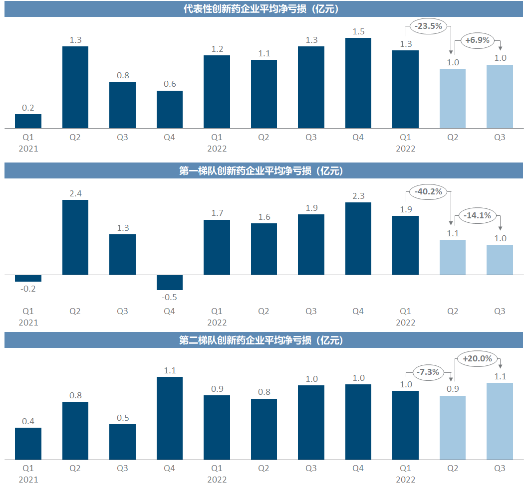 创新药绝大多数都尚未盈利,第一梯队随着收入稳定和销售控费、而净亏损继续收窄,第二梯队则面临亏损扩大的窘境。