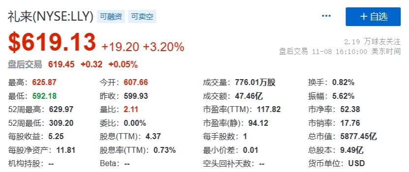 首次消息影响,礼来股价上涨3.2%,市值达到5877.45亿美元,即将突破6000亿美元。此外礼来在第三季度财报中显示替尔泊肽前三季度销售收入总计29.6亿美元,大增1354%,Q3销售额达到14.1亿美元,环比增加约44%,快速放量。