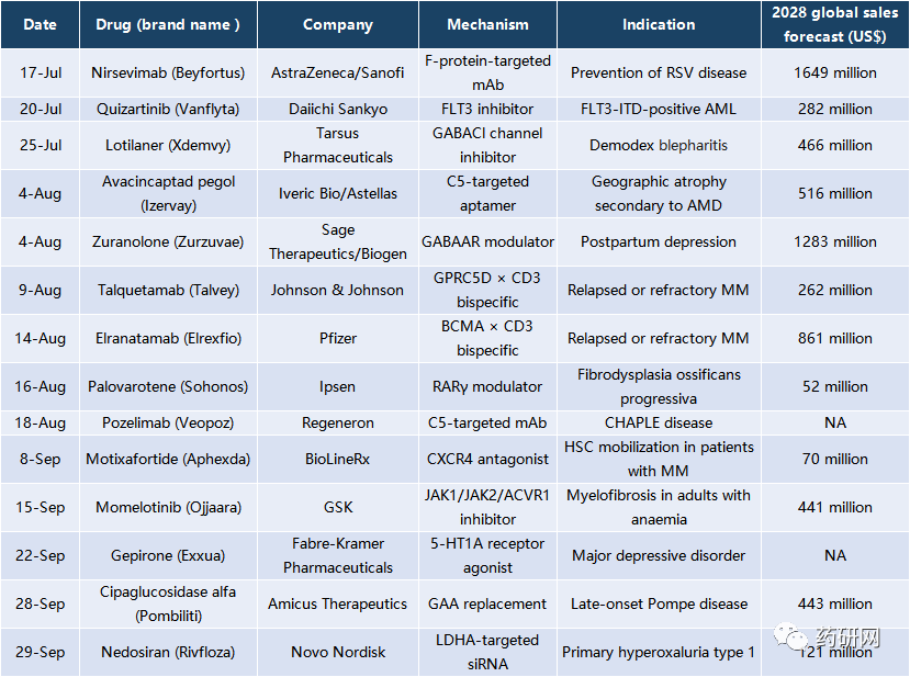 三季度FDA共批准14款新药: