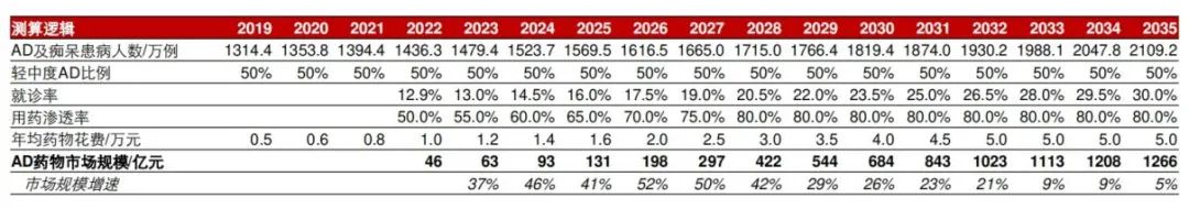 国内 AD药物市场测算(2019-2035)