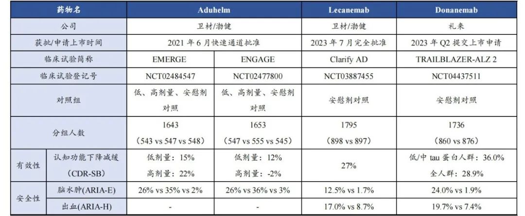 此外,Lecanemab 还是首个关键临床主要临床终点具有高度统计学意义的 Aβ 靶向药,III 期临床研究 Clarity AD 显示达到了主要终点,显著改善患者认知和记忆功能,安全性也相对较好。