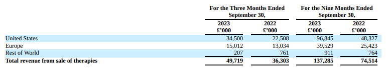 从地区来看,KIMMTRAK销售额主要归功于欧美市场,这或许是由于欧美的支付能力更强。2023前三季度,该产品在美国销售1.19亿美元,欧洲销售4858万美元。