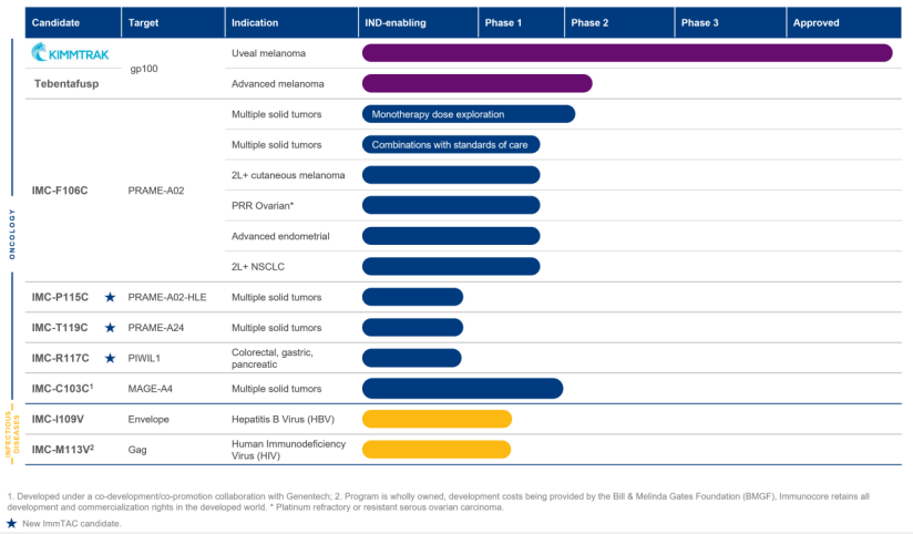 通过ImmTAX平台,Immunocore在肿瘤、感染性疾病和自身免疫病三大疾病领域均有布局。