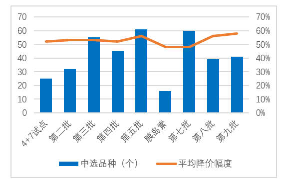 2023年11月6日,第九批国家组织药品集中带量采购在上海产生拟中选结果。此次集采有41种药品采购成功,拟中选药品平均降价58%。其中注射剂最多(约占一半),拟中选品种平均降幅70%,葡萄糖酸钙氯化钠注射液、地塞米松磷酸钠注射液、缩宫素注射液降价幅度更是超过95%以上。