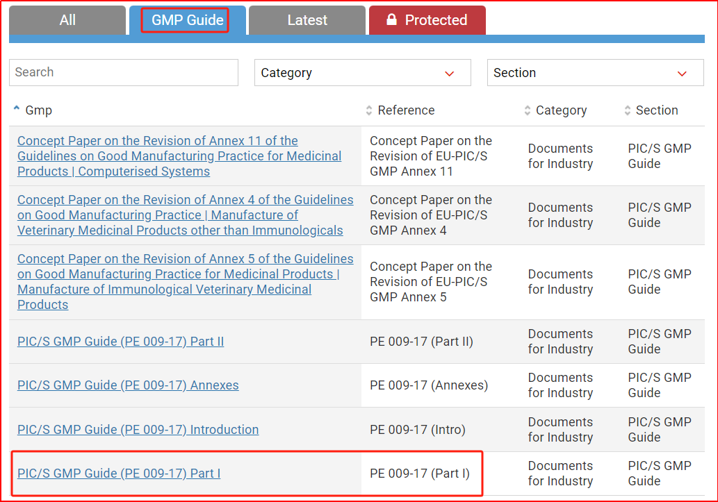 图2 PIC/S官网当前公开的GMP版本 图片来源:https://picscheme.org/en/publications