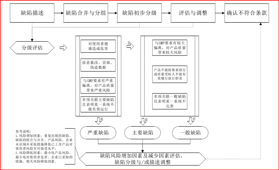其次,检查工作中缺陷的评估定性,无疑是药企关注的重点讨论内容。PIC/S已经发布相关的缺陷分级指南《PIC/S GUIDANCE ON CLASSIFICATION OF GMP DEFICIENCIES》,该指南概述了缺陷分级的定义、要求和检查实践,并形成了药品GMP检查缺陷分级决策流程。