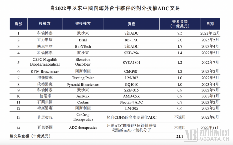 截至2023年上半年,在海外将其ADC管线对外授权的10家中国公司、14条管线