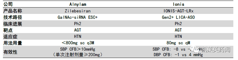 在研高血压siRNA/ASO 药物