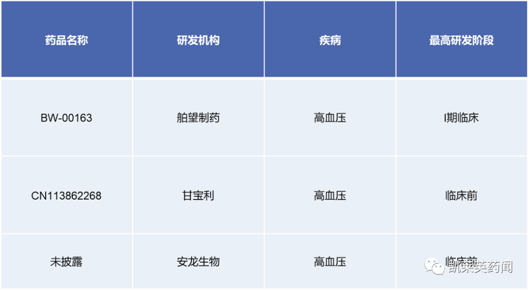 除此以外,国内一些企业也针对高血压小核酸药物开展了研发,其中舶望制药降压小核酸药物已进入1期临床,此外甘宝利、信立泰与安龙生物合作的降压小核酸药物还处于临床前阶段。
