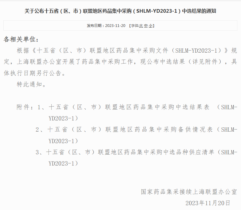 11月20日,上海阳光医药采购网公示国家药品集采接续的15省联盟药品集采最终中选结果。自8月底公布拟中选名单以来,历经3个月,最终中选结果落地,49个国采品种共产生125个中选产品,103家企业成功入围。