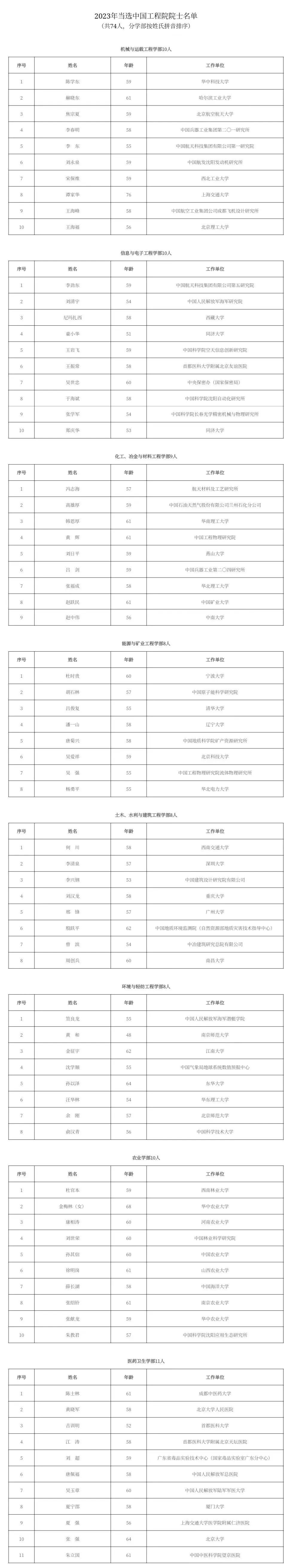 关于公布中国工程院2023年院士增选当选院士名单的公告