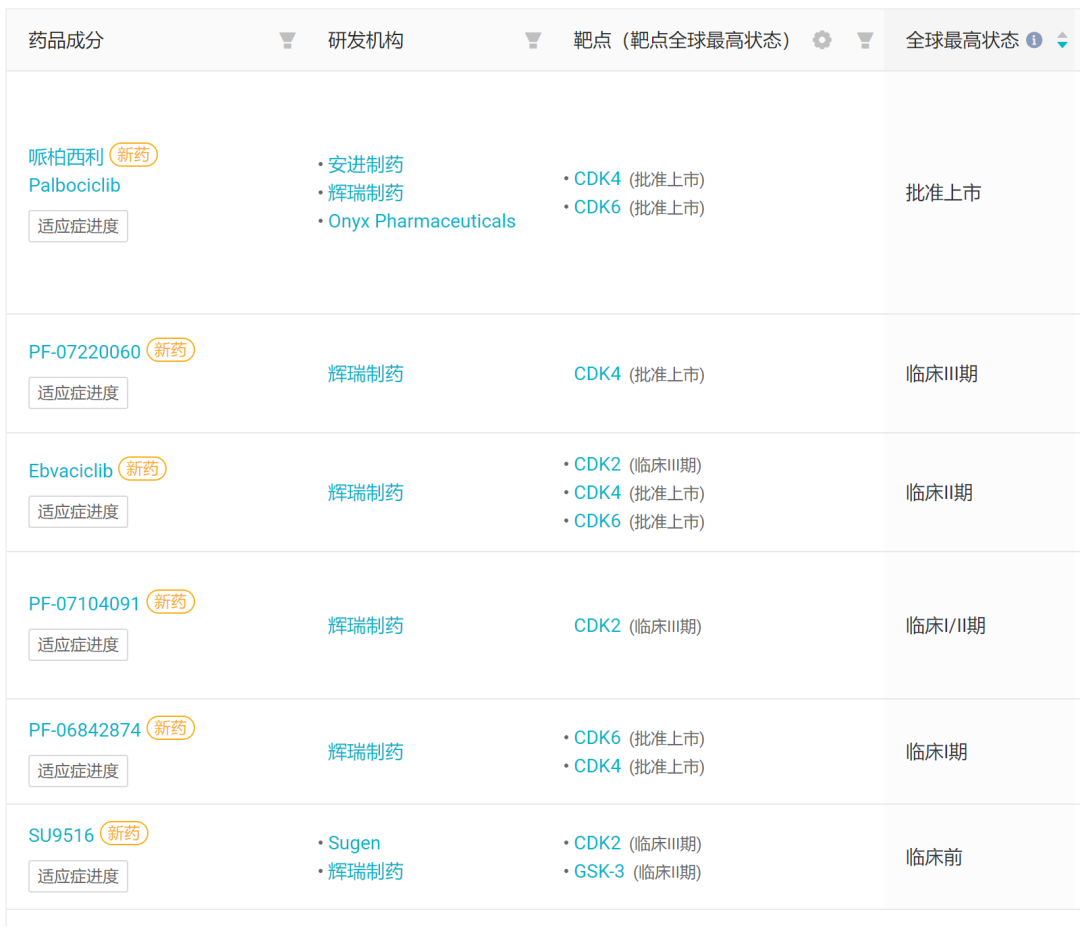 辉瑞在 CDK2、CDK4、CDK6 靶点的布局