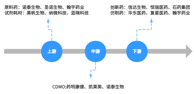 自减肥药概念引市场热炒以来,其本质上巨大的供求不平衡之下,让产业链上的所有成员都想分一杯羹,上下游企业频频受到关注。从最上游的基础供应商,到之后的原料药/CDMO企业,再到之后一体化龙头与创新Biotech企业一片高景气发展。