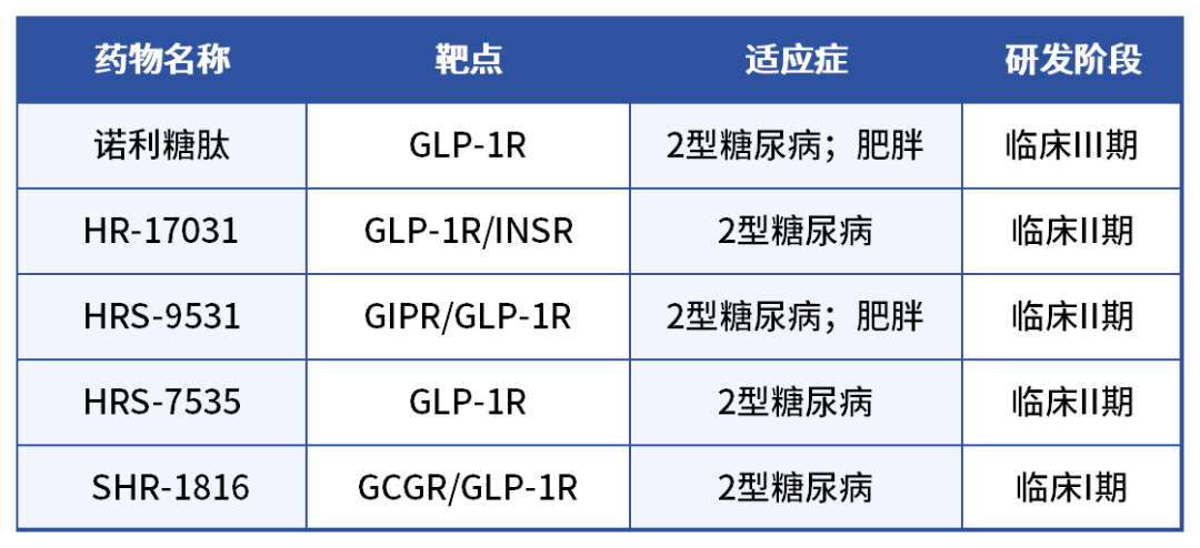 在糖尿病领域,除了甘李药业、东阳光等糖尿病领域老玩家,如恒瑞、石药、众生、华东等上市企业也在积极布局各项GLP-1管线,更不乏期待以GLP-1起家的初创药企,比如先为达、银诺医药、闻泰医药。