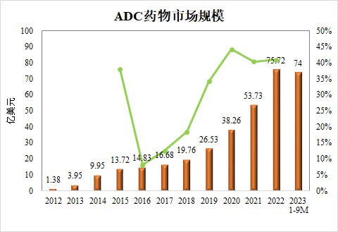 前三季度ADC市场规模74亿美元,预计全年首次突破100亿美元。