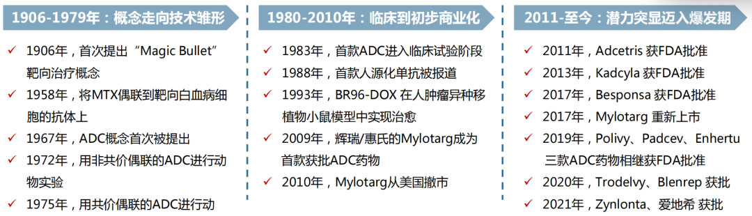 2019年三款ADC药物的相继获批正式标志着该研发领域迈入爆发期。五十余年的基础和临床转化研究,ADC药物密集获批助推领域迈入爆发期。