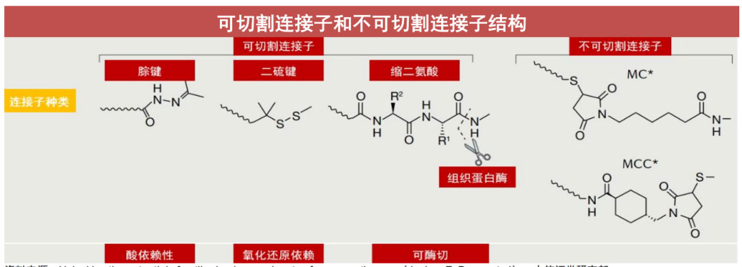 连接子可大致分为两类:可切割连接子(cleavable linker)和不可切割连接子(non-cleavable linker)。