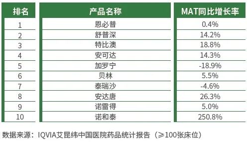 从产品的季度销售额来看,恩必普升至第一,舒普深和特比澳分列第二、第三位。在排名前10的产品中,6款产品来自跨国企业。(图2)