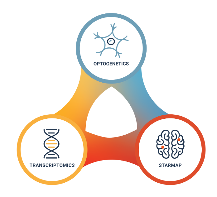 MapLight结合了光遗传学、转录组学以及 STARmap三项关键技术,搭建了一个独特的药物发现平台。光遗传学识别大脑中关键细胞类型的功能。转录组学提供了这些细胞内潜在治疗靶点的文库。STARmap能够在完整脑组织的神经回路中可视化这些目标。这些工具共同推动了针对最难治疗的CNS疾病和症状的多种一流、高度靶向的疗法的开发。