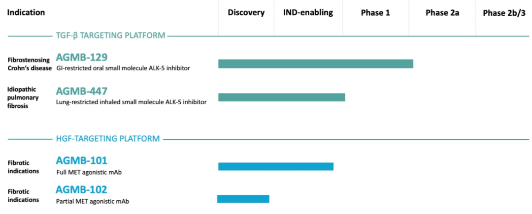 此外,公司还有AGMB-101和AGMB-102两款cMET激动型抗体,可针对多种炎症和纤维化适应症,前者正在进行IND开发,后者处于更早期的药物发现阶段。