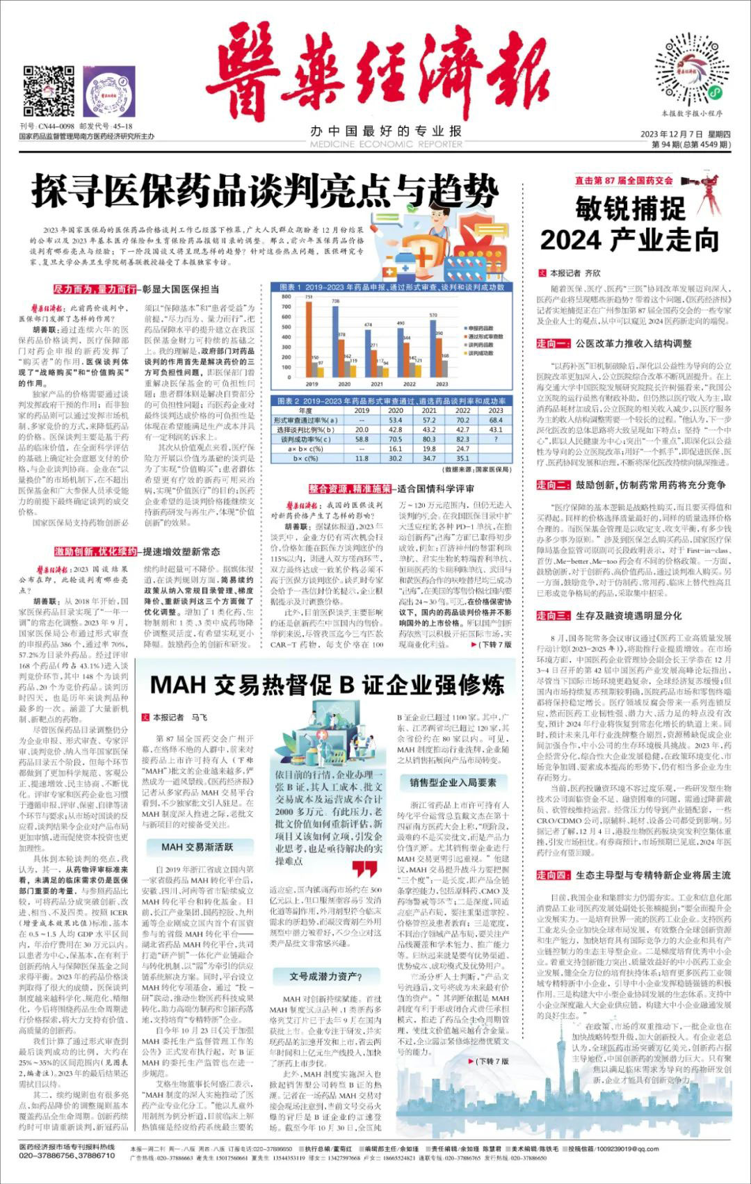 医药经济报:您对下一阶段的医保药品价格谈判有何建议,2024国谈趋势有何看点?