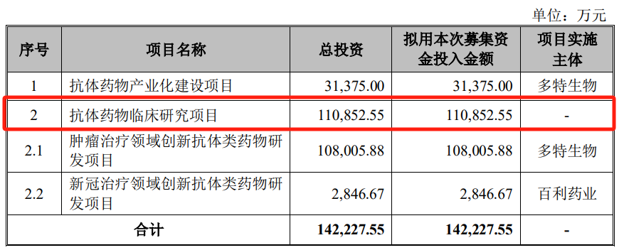 早在今年年初,百利天恒调整了抗体药物临床研究项目的子项目(四抗)临床拟投入募集资金金额从5.44亿缩减为2.74亿元,最终调减至3407.29万元;双抗临床研究的拟投入募集资金金额也从5.36亿缩减至2.07亿元;同时,公司新增ADC药物研究项目,拟投入募集资金3.42亿元。