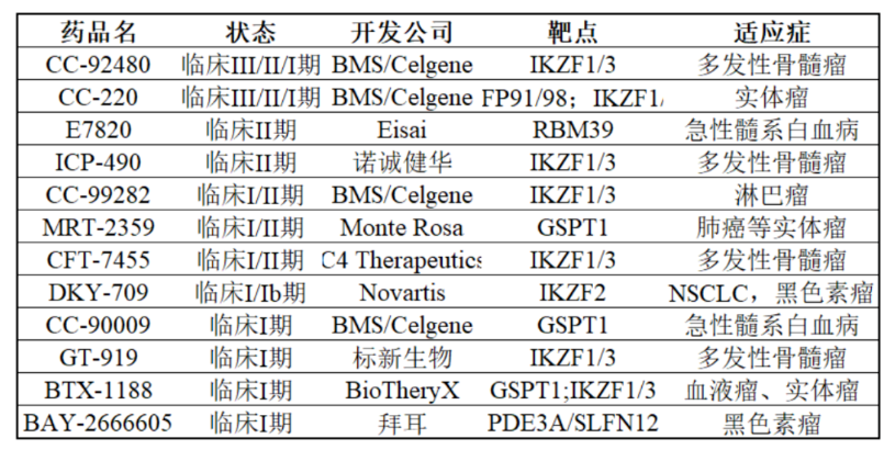 而分子胶降解剂作为PROTAC的下一程,与PROTAC相比,分子胶在成药性方面极具吸引力,其尺寸和分子量相对较小,具有更高的膜渗透性、更佳的药代动力学特性以及更好的可开发性,是一种极有潜力的药物开发策略,可以针对一些不可成药的靶点进行药物开发[4]。