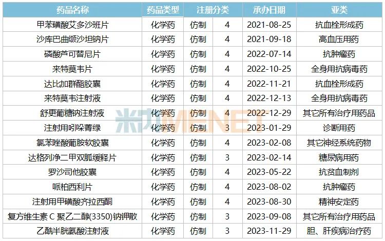 2023年是公司首仿药的爆发年,截至目前已获批了7个仿制药新品,其中聚多卡醇注射液、芦比前列酮软胶囊、培唑帕尼片(同日获批)、马昔腾坦片(同日获批)以及最新获批的马来酸阿伐曲泊帕片均为国内首仿,数量是近三年最多的一年。