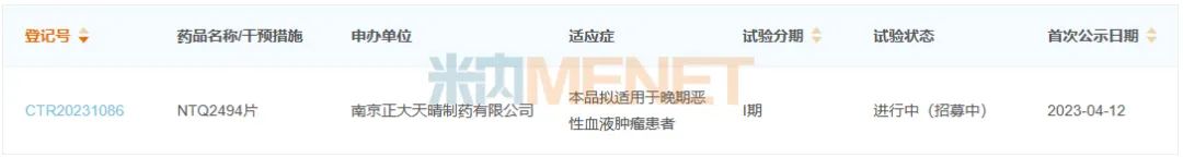 2022年公司第二款抗肿瘤化药1类新药NTQ2494片获批临床,今年4月该新药“用于晚期恶性血液肿瘤”适应症已启动I期临床。