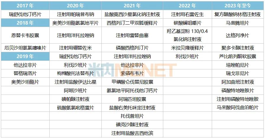 值得注意的是,南京正大天晴制药已过评且暂未纳入国采的产品中,托伐普坦片、阿瑞匹坦胶囊、索磷布韦片、磷酸西格列汀片、米拉贝隆缓释片、注射用右雷佐生、磷酸特地唑胺片、达格列净片等产品的竞争企业(原研+过评)已≥5家,明年的第十批国采又将盯上谁?我们拭目以待。