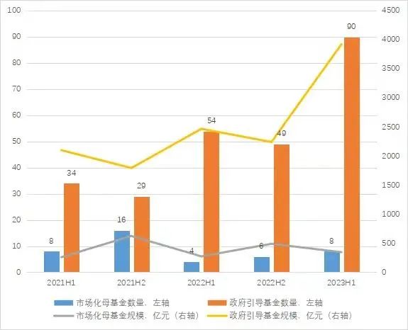 今年上半年,新发起母基金共98家。其中政府引导基金90家,管理规模3922亿元;市场化母基金8家,管理规模346亿元。