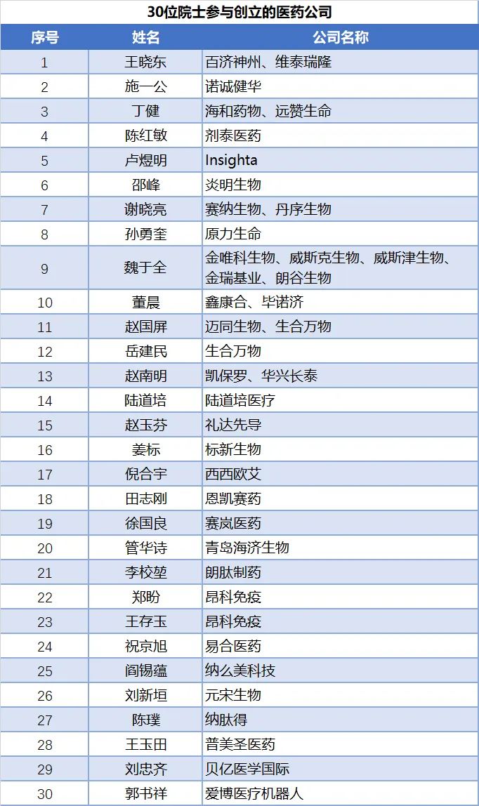 在不久前公布的2023年两院院士增选结果中,生命科学领域共22名两院院士新当选。其中,中国科学院生命科学和医学学部新增11人,中国工程院医药卫生学部新增11人。“院士”作为科学技术方面的最高学术称号,代表着拥有世界领先的科技水平,而院士们主要参与创办的公司也备受关注和期待,也获得了资本踊跃支持。