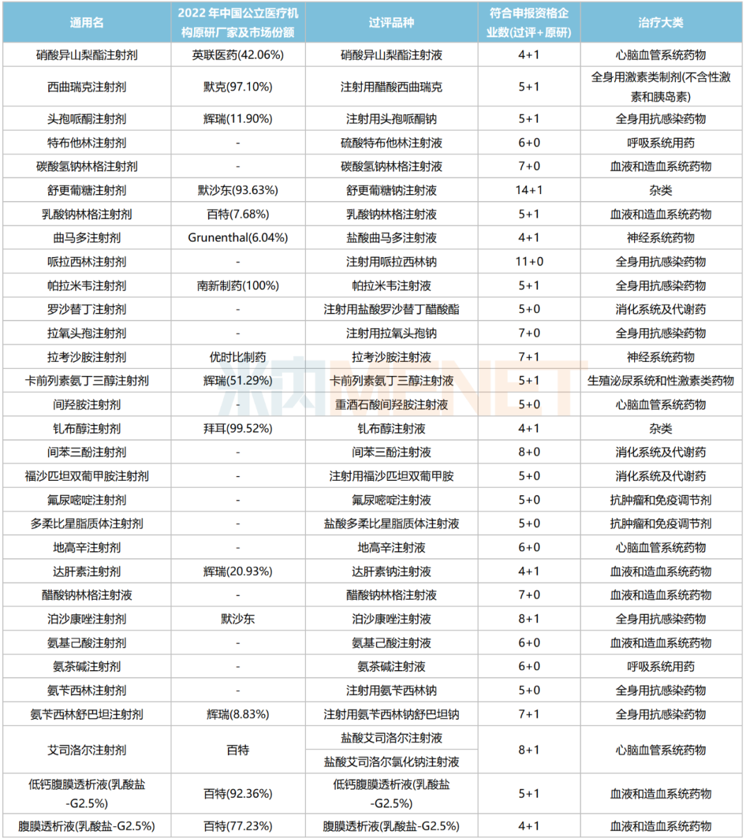 近日,多地陆续开展第九批集采第二备供企业申报确认工作,第十批集采有望于明年上半年提上日程。米内网数据显示,目前已有82个品种满足5家及以上的竞争条件,2022年在中国公立医疗机构终端的销售额合计超过570亿元;注射剂仍为“主角”,9个品种竞争激烈,科伦、齐鲁、石药、扬子江等头部企业继续领跑。