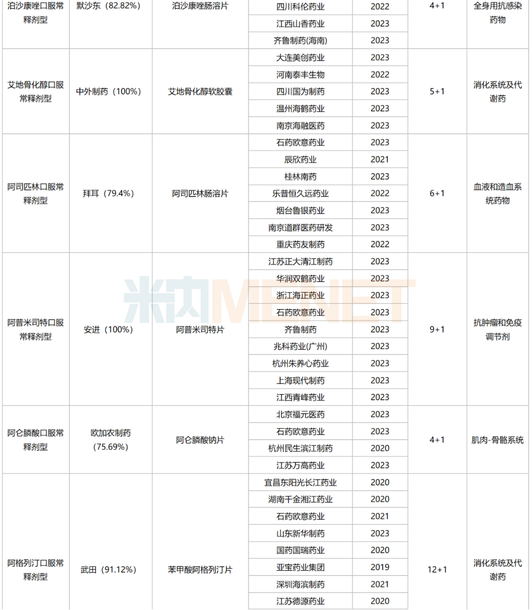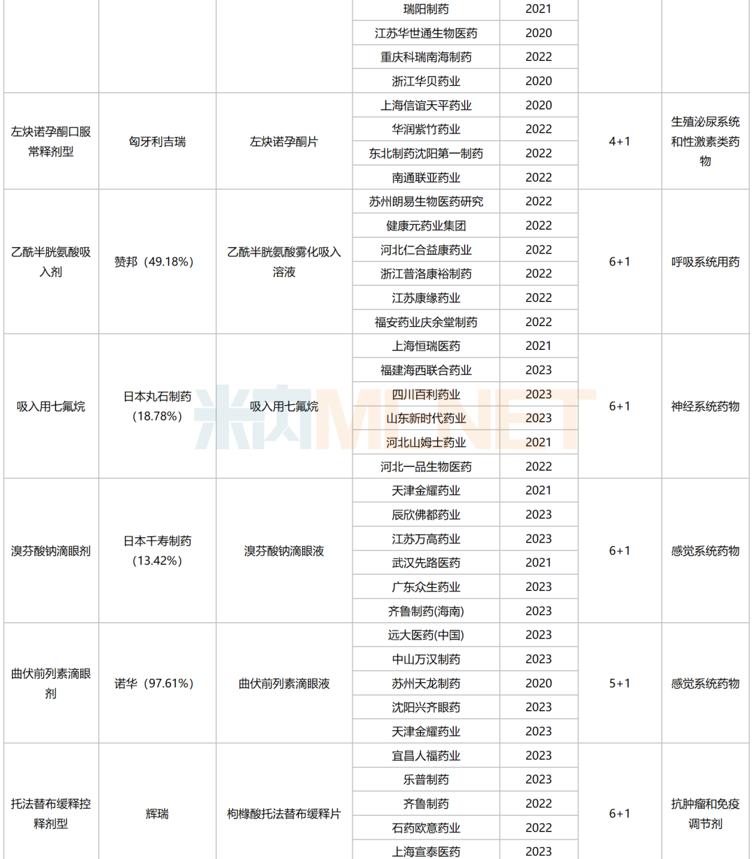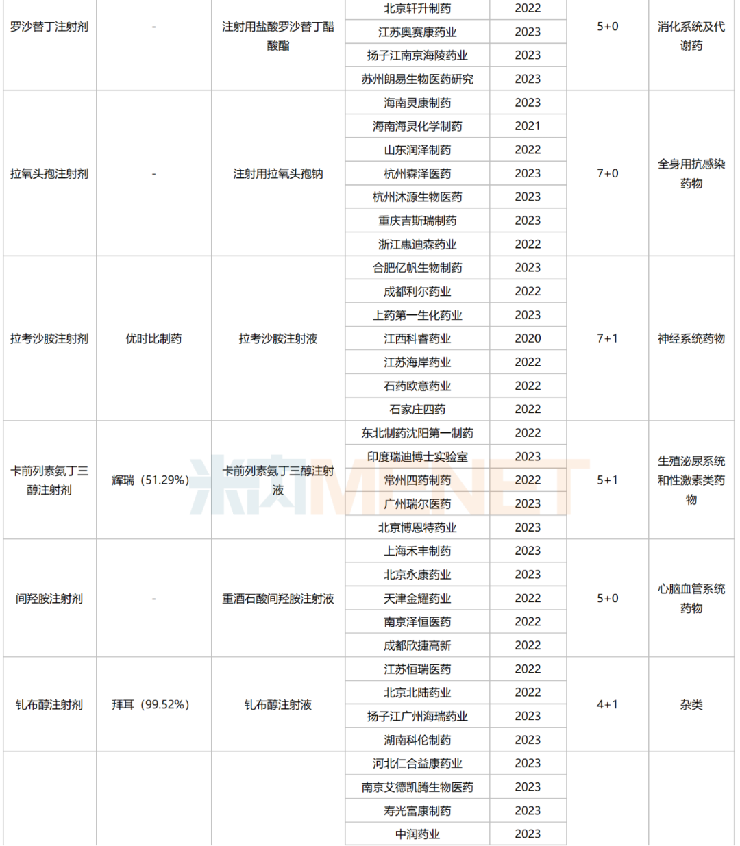 符合申报条件企业数达5家及以上且未纳入集采的化药(详细表格见文末)