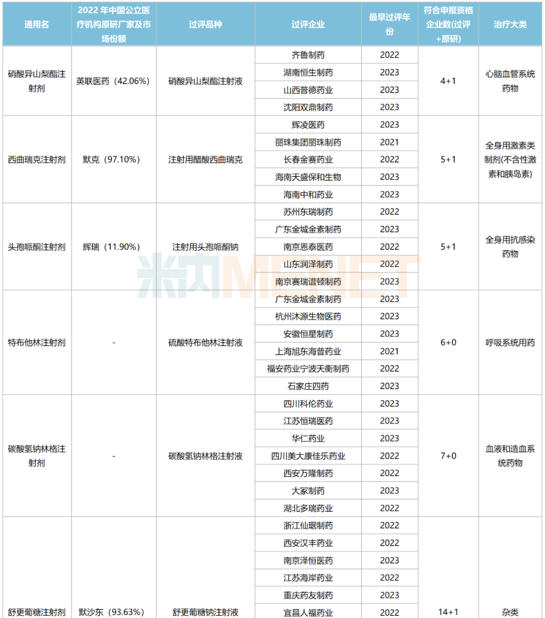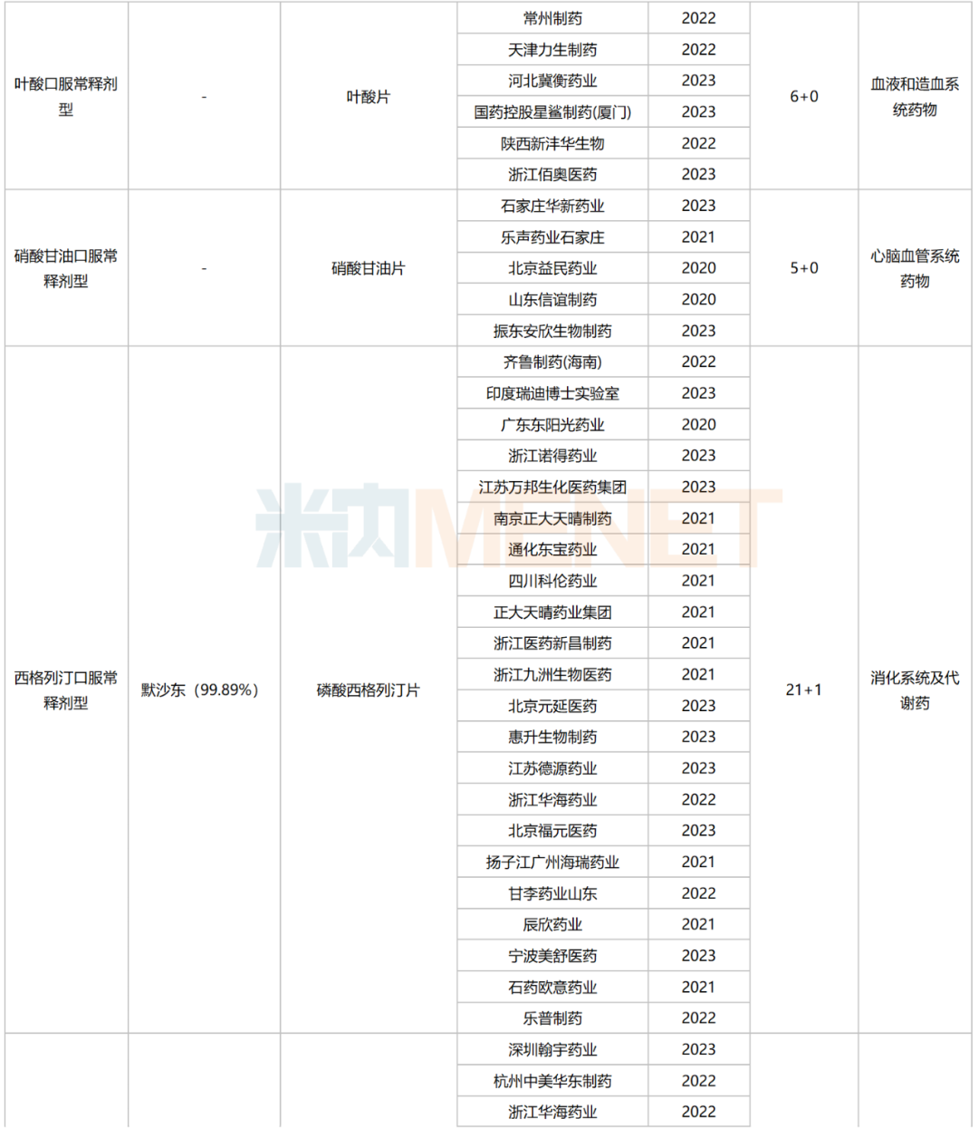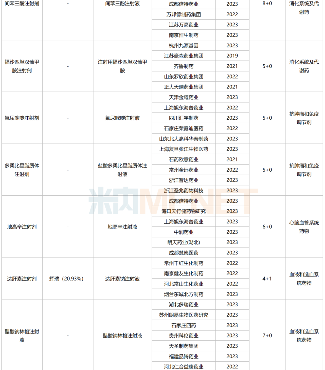 符合申报条件企业数达5家及以上且未纳入集采的化药(详细表格见文末)