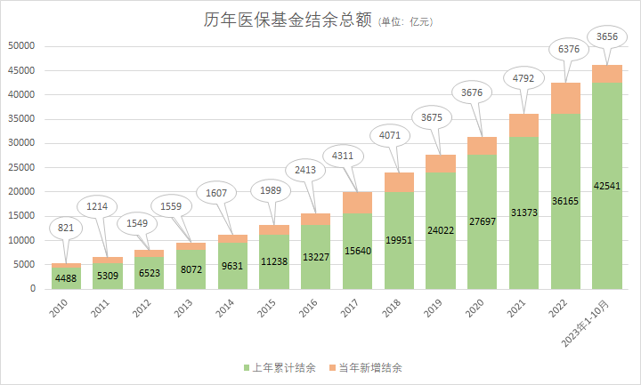 11月27日披露的数据,今年1-10月份医保基金总收入26187亿元,总支出22531亿元,算下来10个月医保总盘子就多出来3600亿元,历年医保基金累计结余更是已经超过46000亿元,足够应付一年半的支出。