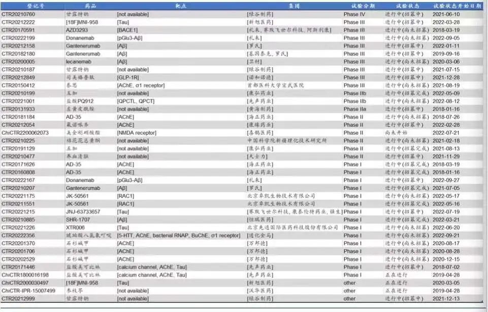 国内阿尔茨海默病药物临床试验(截至2022年)