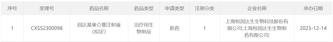 12月14日,中国国家药监局药品审评中心(CDE)官网公示,恒润达生生物递交了润达基奥仑赛注射液(拟定)的上市申请,并获得受理。根据恒润达生早先招股书资料介绍,该公司CD19靶向CAR-T产品HR001治疗复发/难治性B细胞非霍奇金淋巴瘤(r/r B-NHL)适应症的临床试验申请此前已被纳入优先审评。恒润达生在招股书中表示,预计于2023年提交该药的新药上市申请。